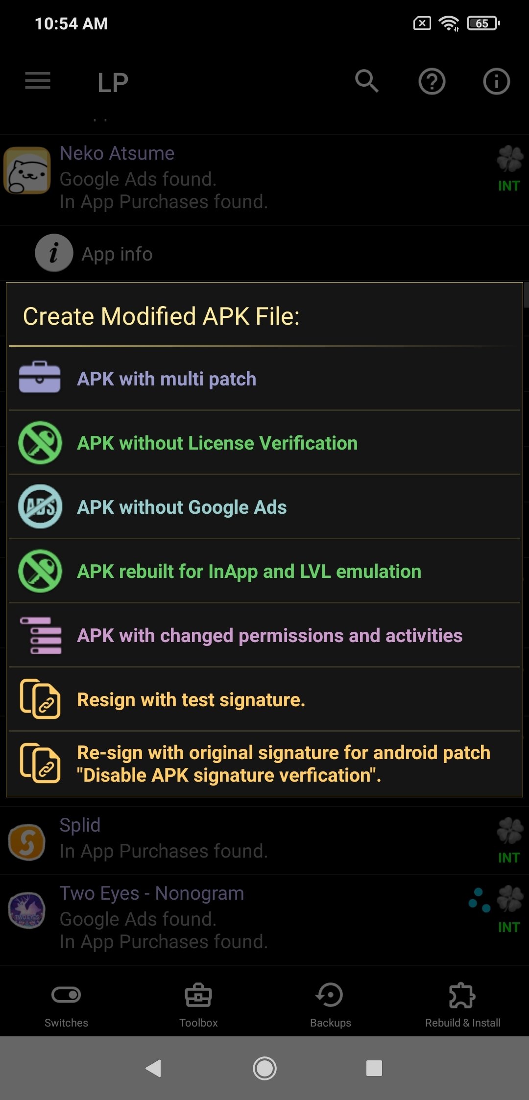 Además, las apps con verificación en servidor o cifrado reforzado suelen resistirse a las versiones MOD. Aun así, Lucky Patcher mantiene activos sus métodos de parcheo más comunes, lo que permite seguir usándolo en casos concretos. Pero siempre con las limitaciones propias de este tipo de herramientas.