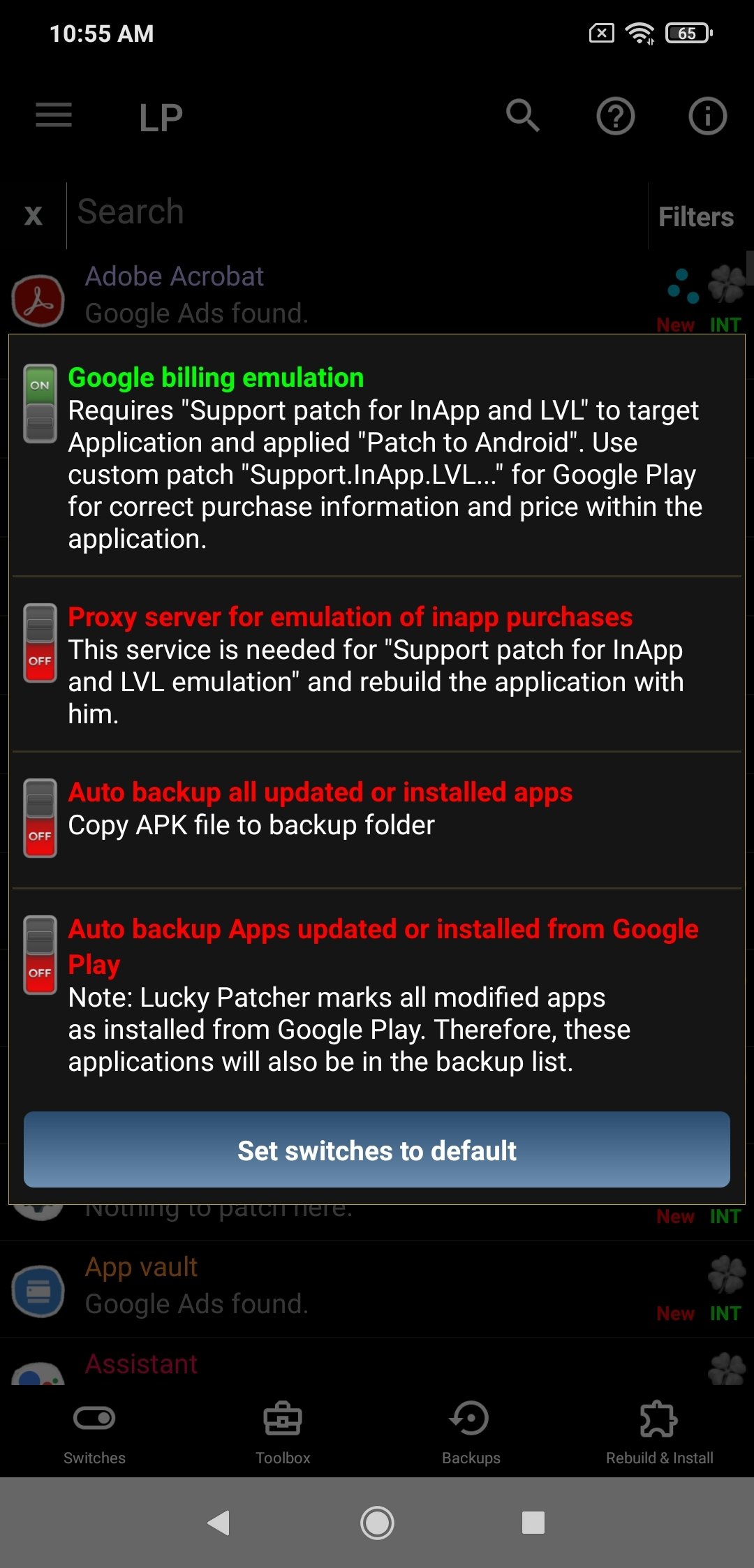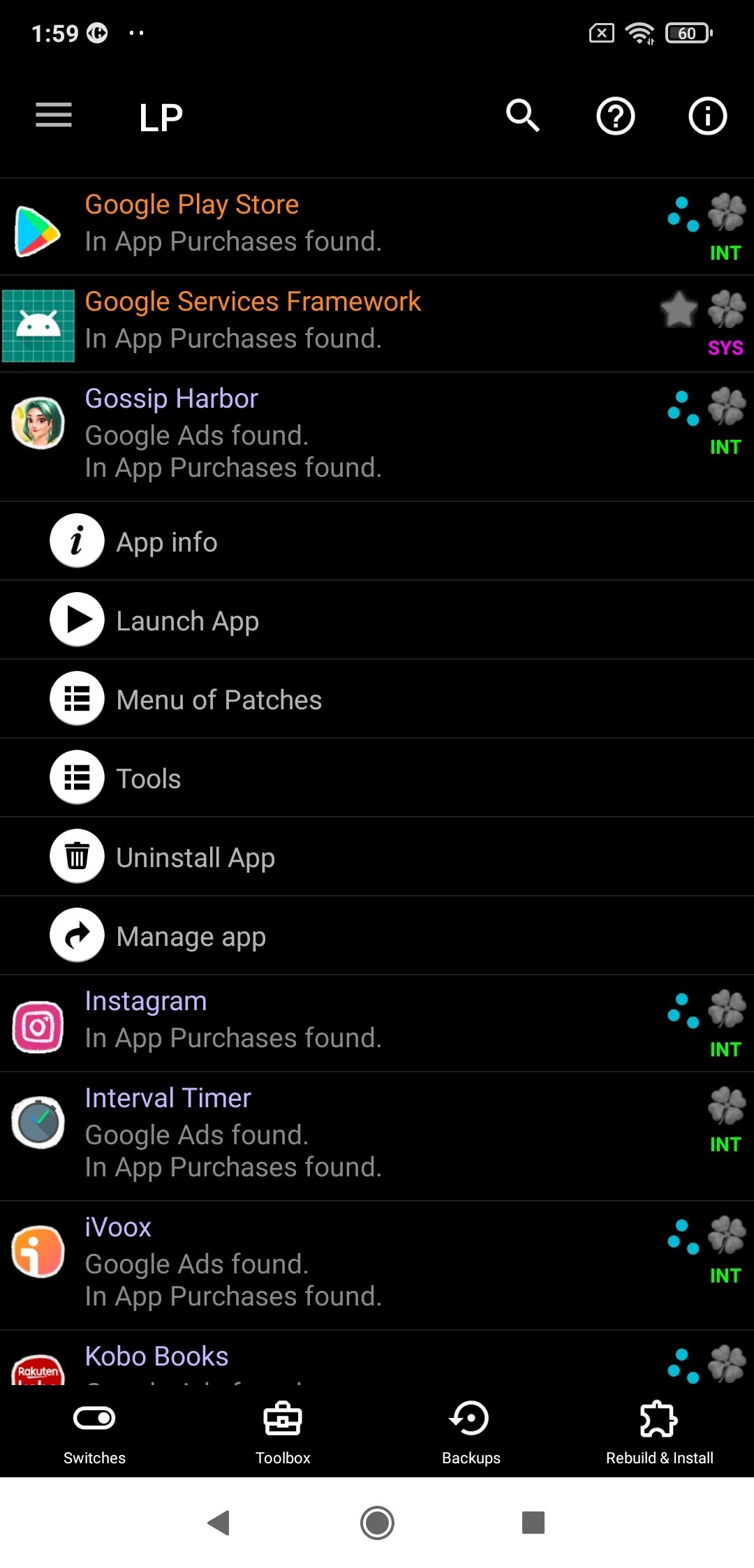 Aplicar parches en Lucky Patcher permite modificar funciones concretas de una app utilizando ajustes prediseñados creados para ese caso específico. Para aplicar un parche específico haz esto: